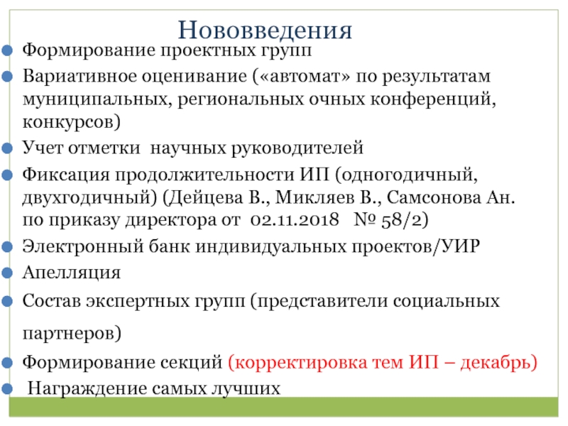 В., Микляев В., Самсонова Ан. по приказу директора от 02.11.2018 № 58/2)