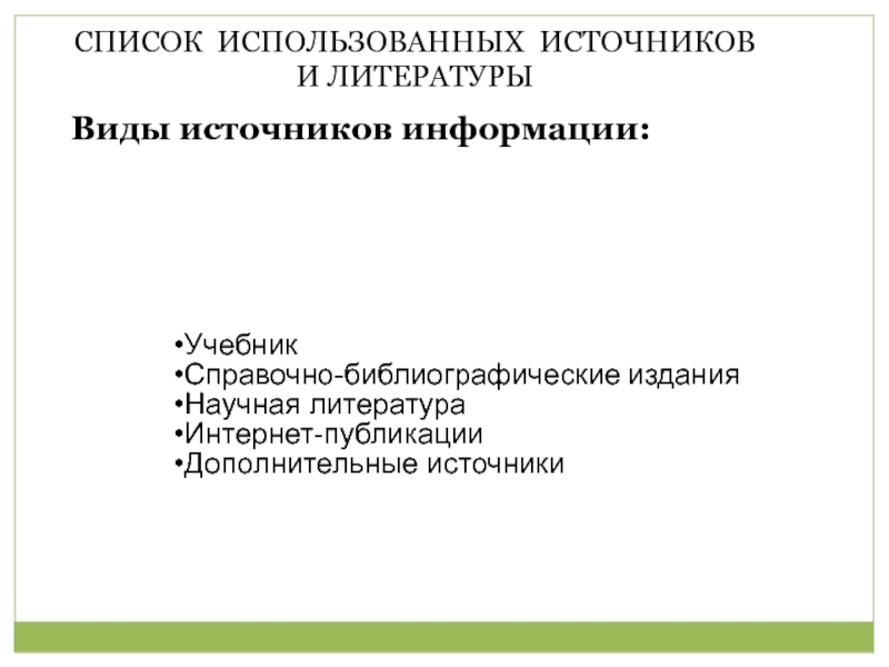Слайд 46СПИСОК ИСПОЛЬЗОВАННЫХ ИСТОЧНИКОВ