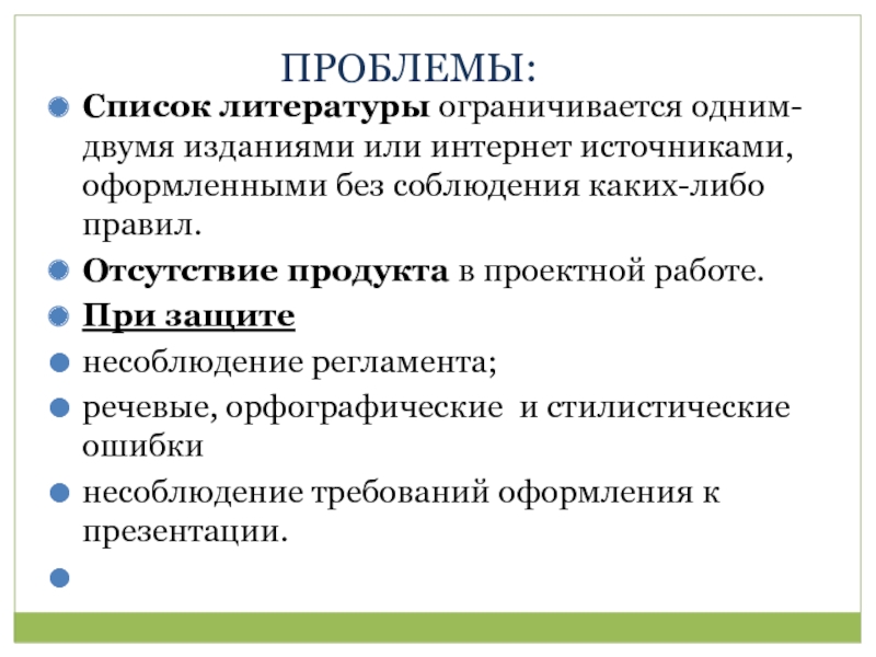 Проблема исследования, проекта банальна, давно решена, общеизвестна, списана из интернета, несамостоятельна, не имеет отношения к личности «автора»-ученика