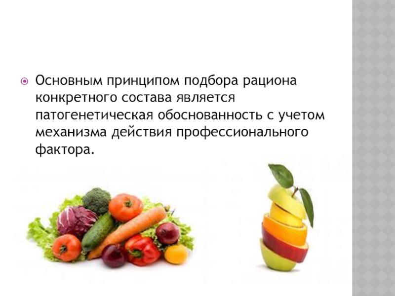 Слайд 5Основным принципом подбора рациона конкретного состава является патогенетическая обоснованность с