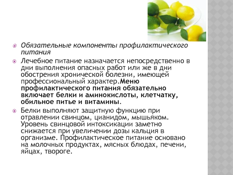 нарушений в организме, обусловленных воздействием вредных профессиональных факторов. Лечебно-профилактическое питание