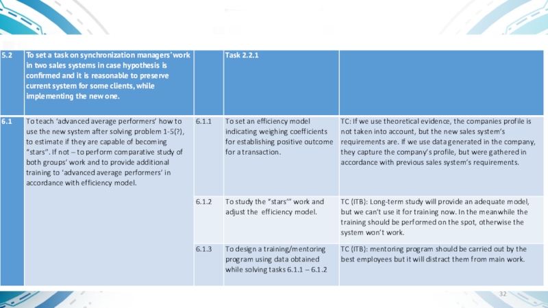 efficiency model of the new sales system and pick up those which are also suitable for current system. To use existing experience for training these “common” behavior patterns;