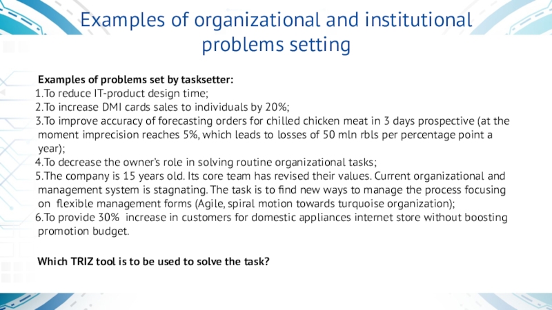 Особенности применения ТРИЗ для решения организационно-управленческих задач: схематизация изобретательской ситуации