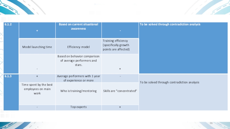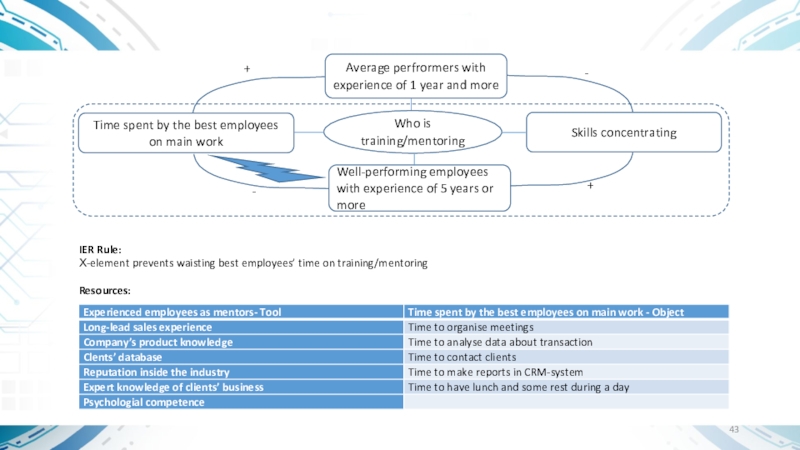 So, it is irrational to exclude experienced employees from mentoring process, but there are ways to decrease their time input in the process 2-3 times without results’ decline. The contradiction is partially solved.