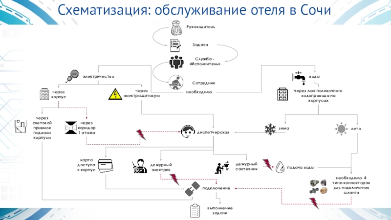 Слайд 48Кейс: задача о подключении к инженерным сетям – только схематизация
