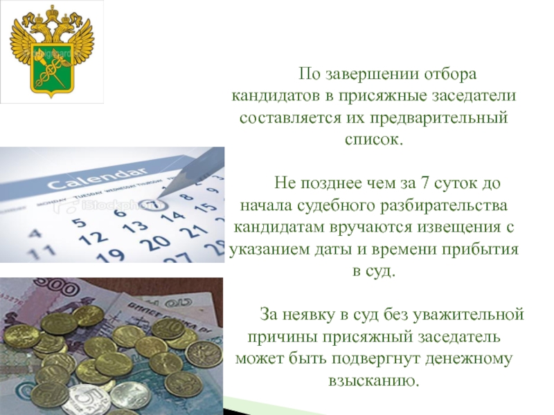 За нарушение своих обязанностей присяжный заседатель может быть отстранен от дальнейшего участия в рассмотрении дела.