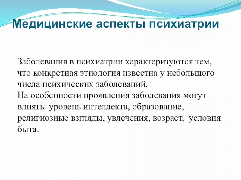 Слайд 8Медицинские аспекты психиатрии