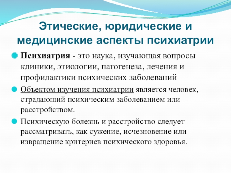 Этические, юридические и медицинские аспекты психиатрии