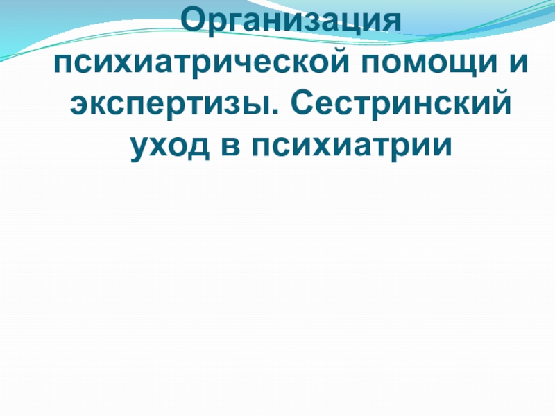 Организация психиатрической помощи и экспертизы. Сестринский уход в психиатрии