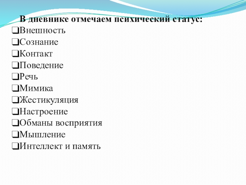 Слайд 20В дневнике отмечаем психический статус:
