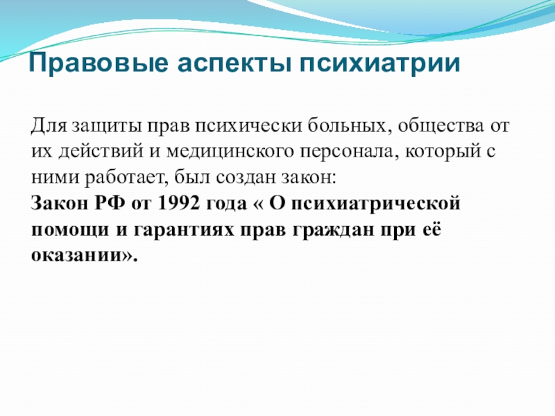 Слайд 6Правовые аспекты психиатрии