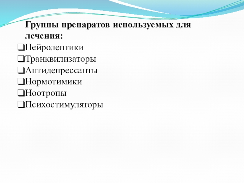 Слайд 15Группы препаратов используемых для лечения: