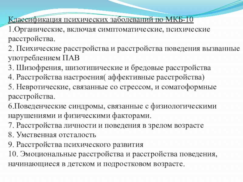 Слайд 12Классификация психических заболеваний по МКБ-10