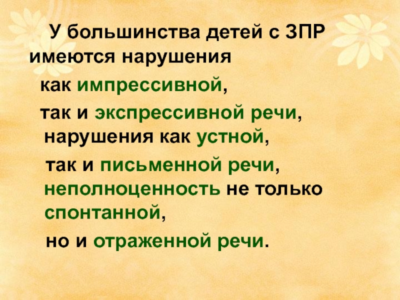 так и экспрессивной речи, нарушения как устной,