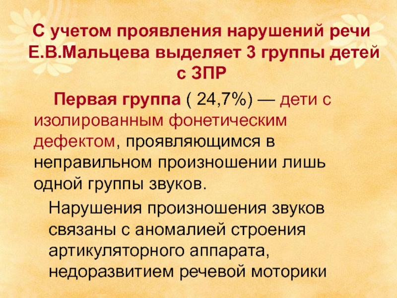 Первая группа ( 24,7%) — дети с изолированным фонетическим