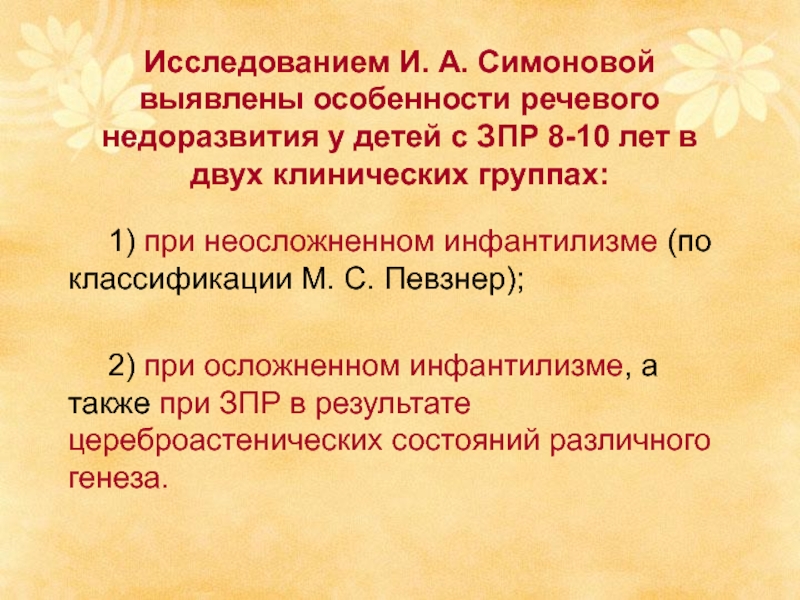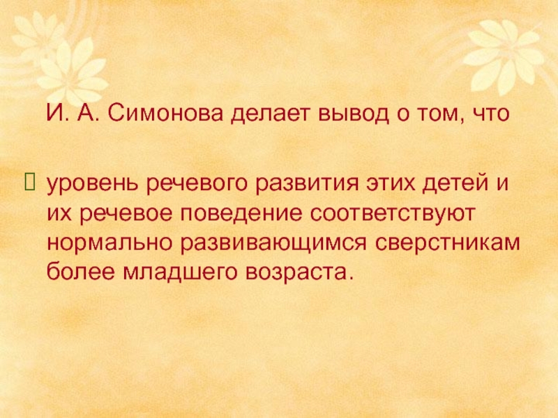 Слайд 9Исследованием И. А. Симоновой выявлены особенности речевого недоразвития у детей