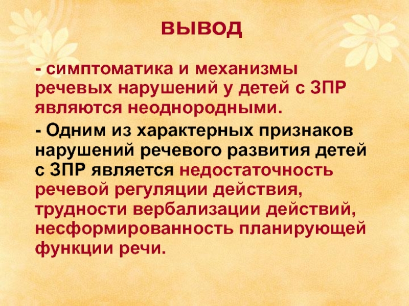 - симптоматика и механизмы речевых нарушений у детей с ЗПР