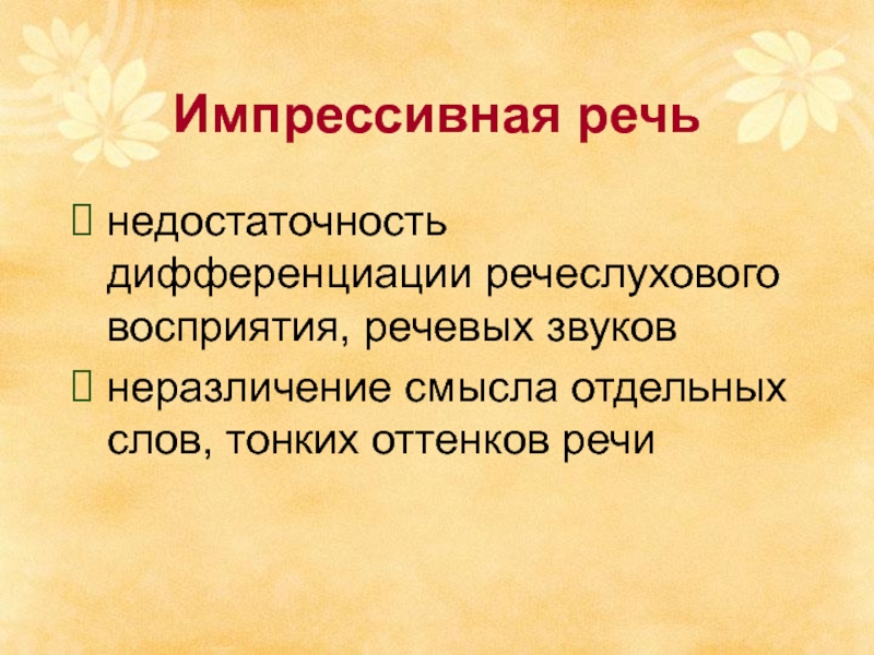 Слайд 4Импрессивная речь