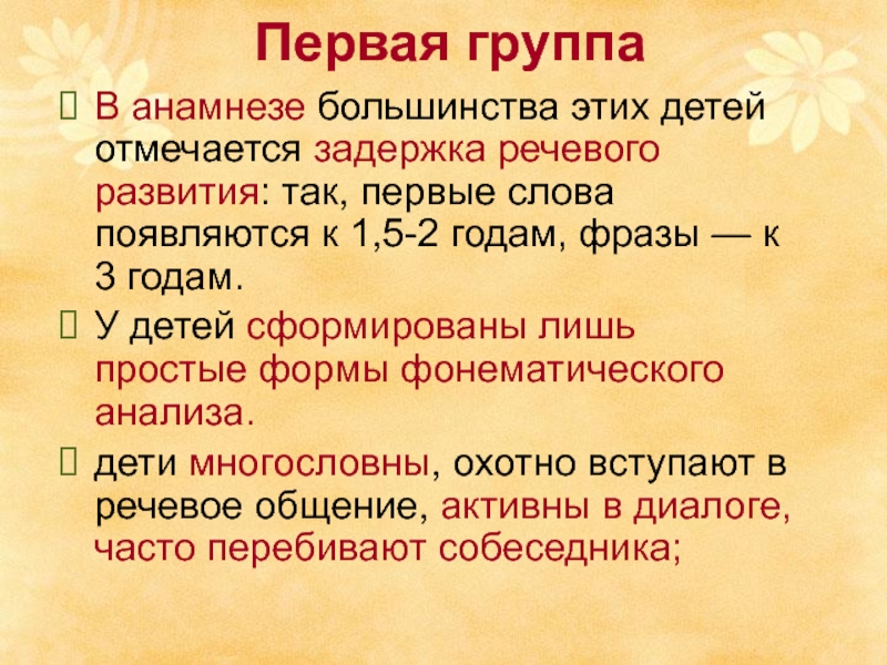В анамнезе большинства этих детей отмечается задержка речевого развития: