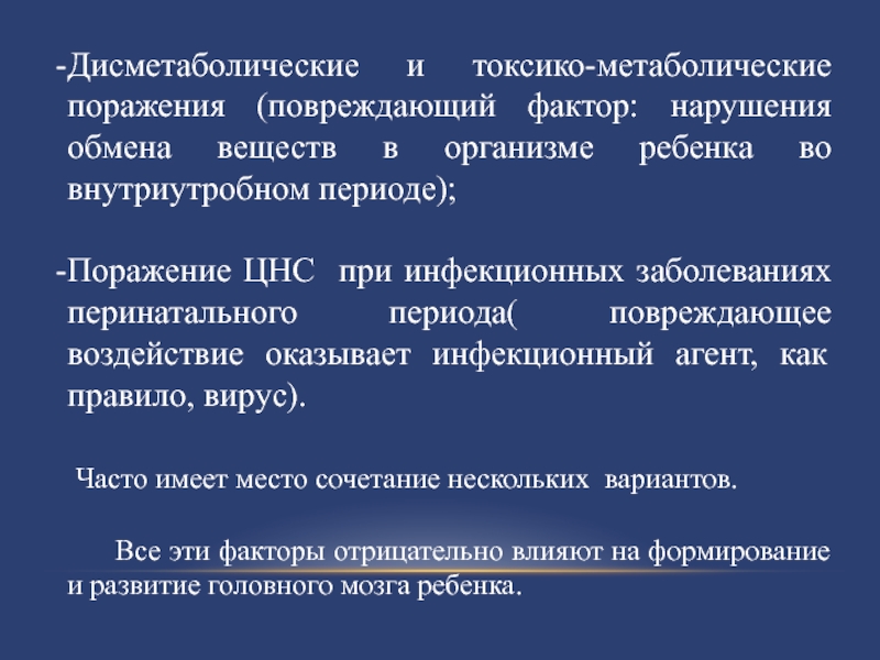 Причины которые могут приводить к перинатальным поражениям ЦНС у