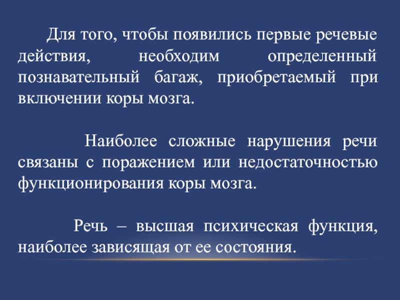 Слайд 8 Для того, чтобы появились первые речевые действия,