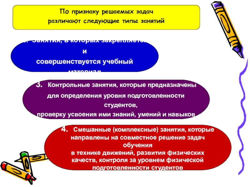 занятие; учебно-тренировочное занятие; контрольное занятие.
