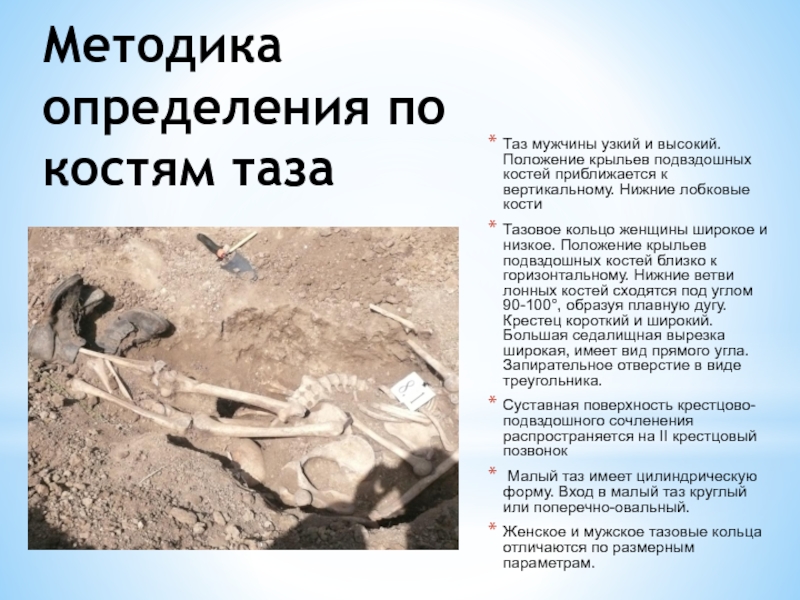 Половая принадлежность скелетированных останков определяется по особенностям строения костей.