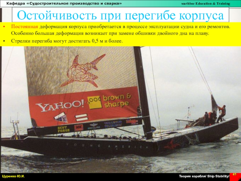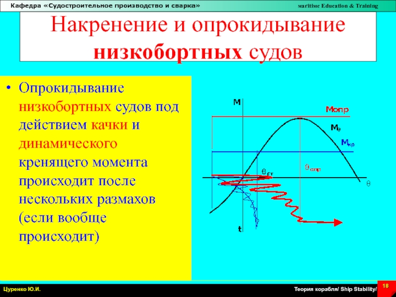 Слайд 18Накренение и опрокидывание низкобортных судов