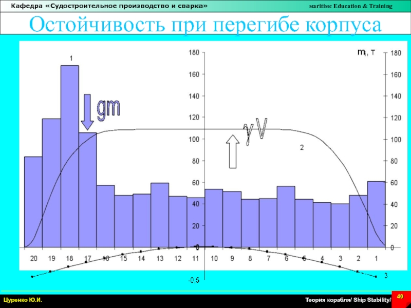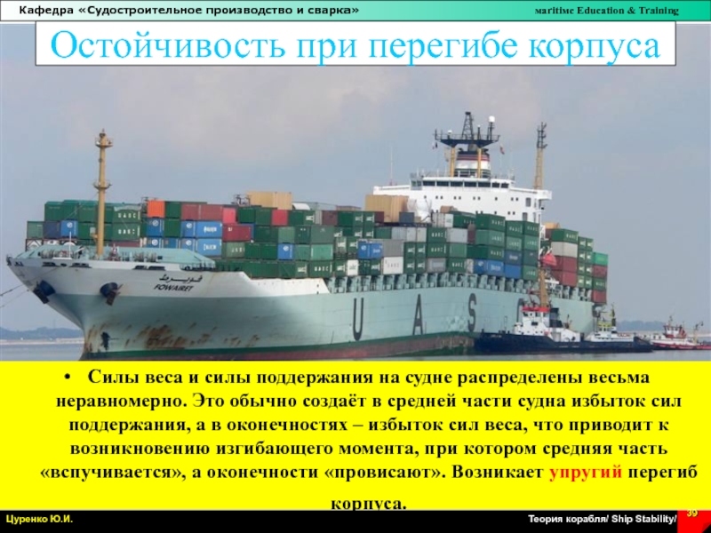 избыток сил поддержания, а в оконечностях – избыток сил веса, что приводит к возникновению изгибающего момента, при котором средняя часть «вспучивается», а оконечности «провисают». Возникает упругий перегиб корпуса.