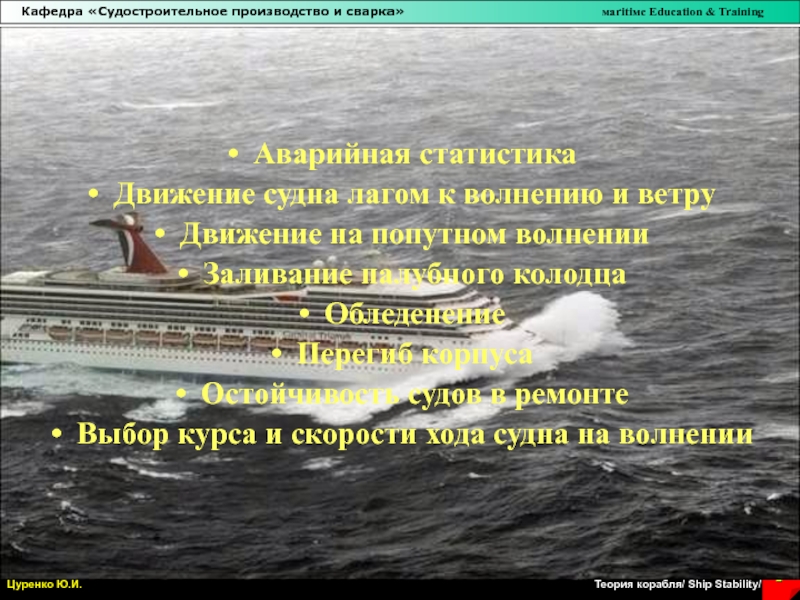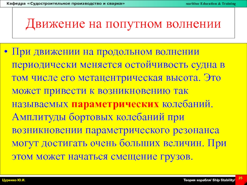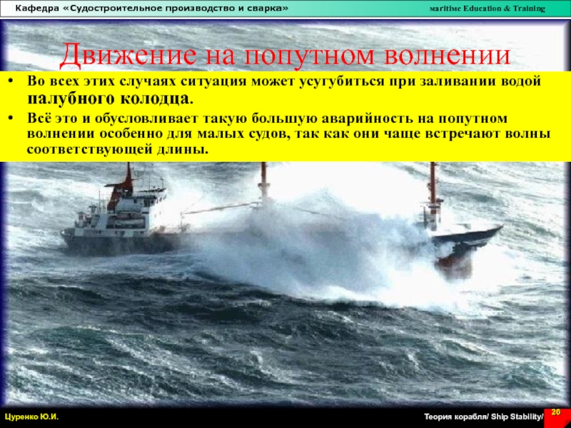аварийность на попутном волнении особенно для малых судов, так как они чаще встречают волны соответствующей длины.