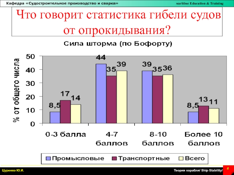 Слайд 4Что говорит статистика гибели судов от опрокидывания?