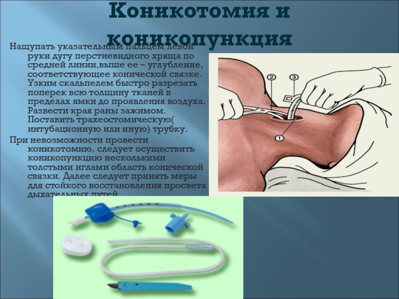 4. При невозможности выполнить предыдущие пункты следует произвести коникотомию.