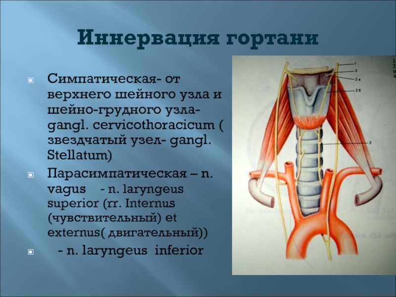 1. Возвратный гортанный нерв(n. laryngeus reccurens)