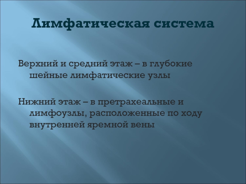 Верхний и средний этаж – в глубокие шейные лимфатические