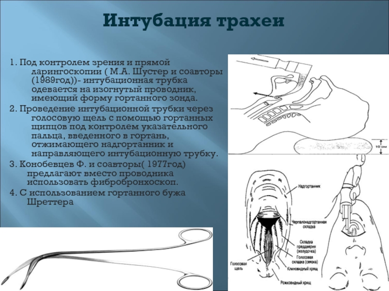 Шустер и соавторы(1989год))- интубационная трубка одевается на изогнутый проводник, имеющий