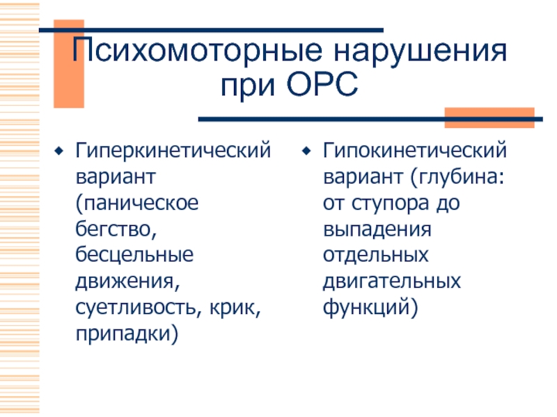 Гиперкинетический вариант (паническое бегство, бесцельные движения, суетливость, крик,
