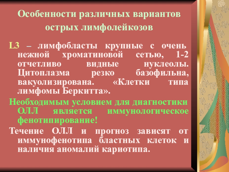 Слайд 33Особенности различных вариантов острых лимфолейкозов