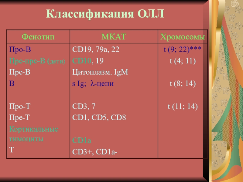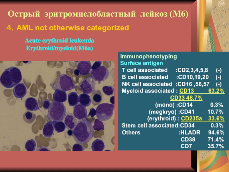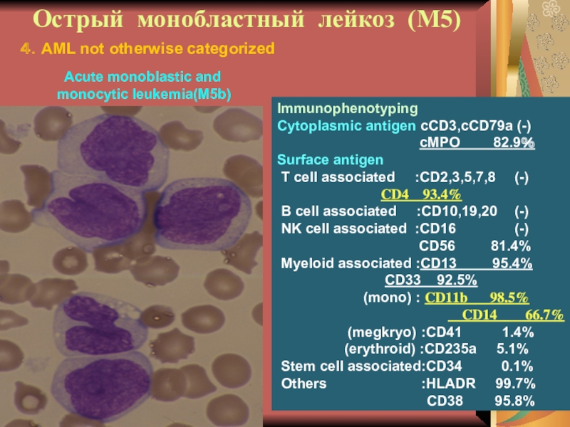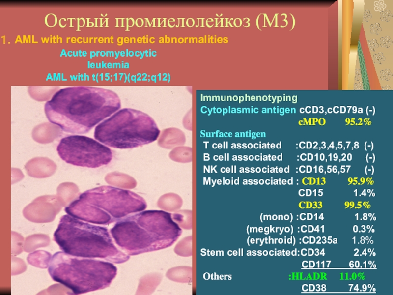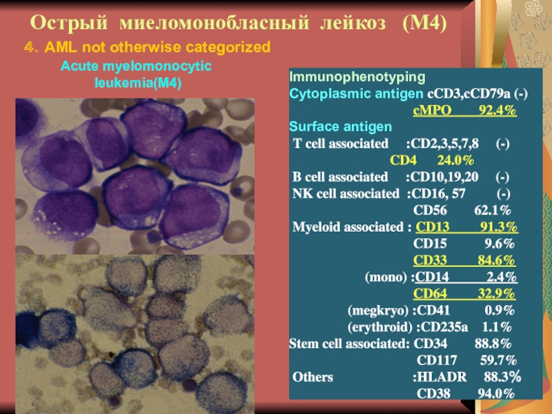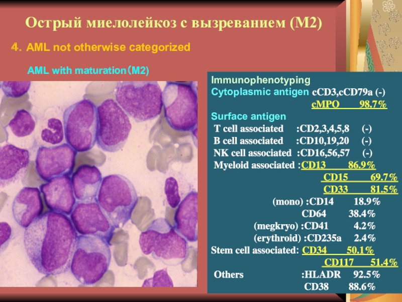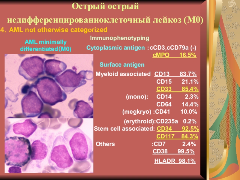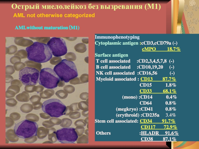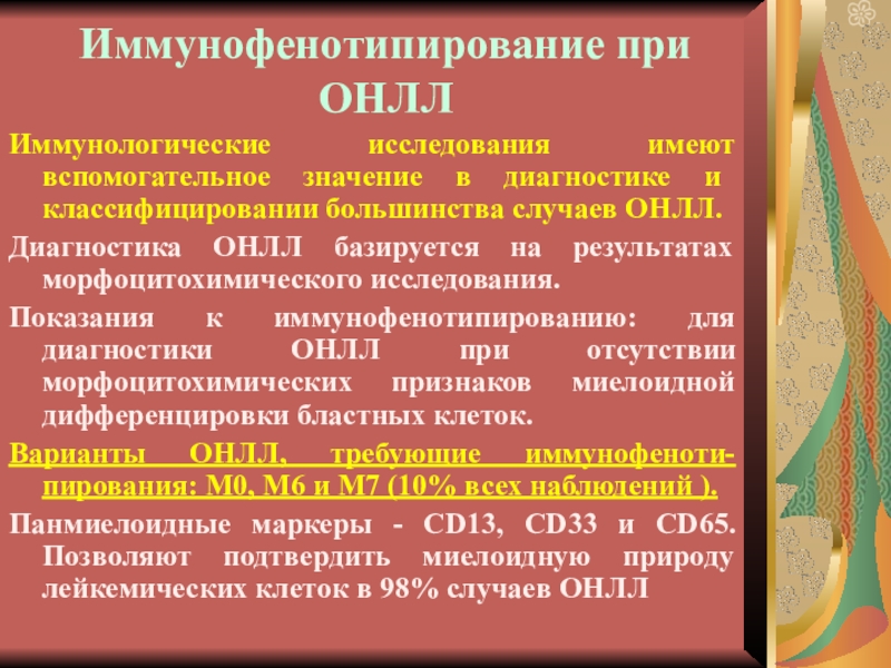 Слайд 29Иммунофенотипирование при ОНЛЛ