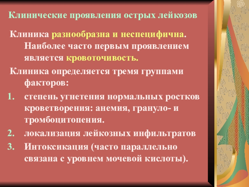 Слайд 4Клинические проявления острых лейкозов