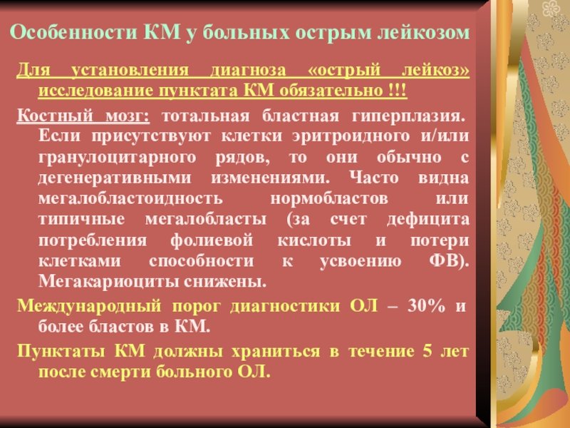 Слайд 7Особенности КМ у больных острым лейкозом