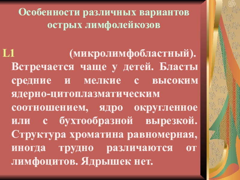 L1 (микролимфобластный). Встречается чаще у