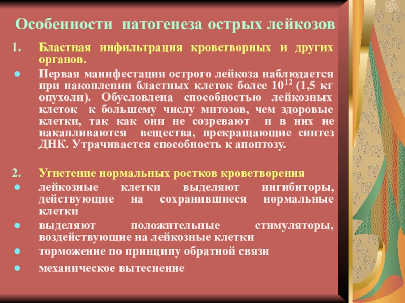 Слайд 3Особенности патогенеза острых лейкозов