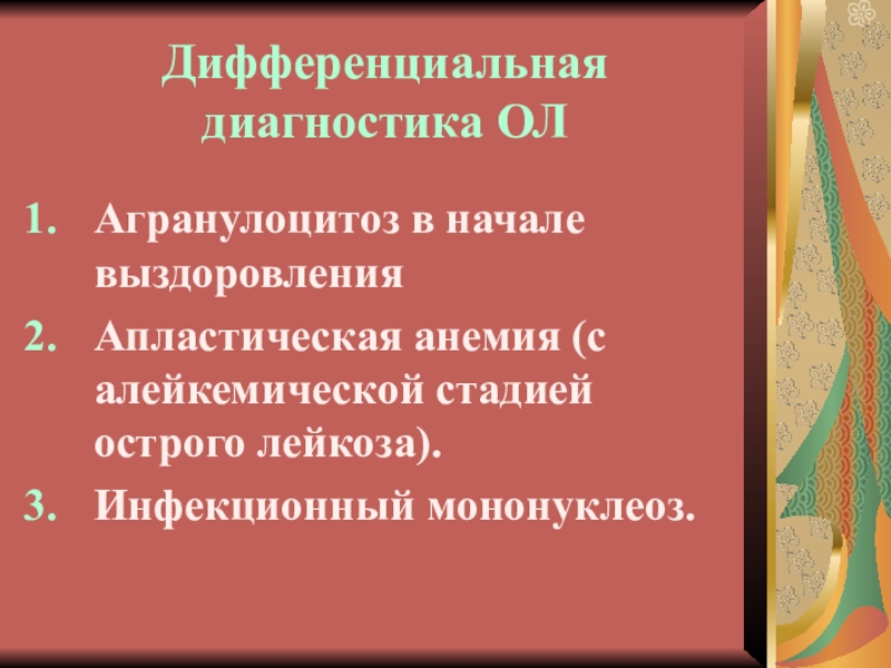 Слайд 10Дифференциальная диагностика ОЛ