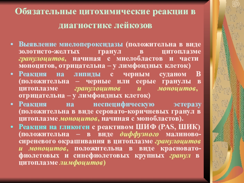 лейкемических клеток на основании морфоцитохимических критериев.