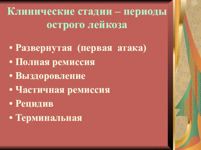 Слайд 8Клинические стадии – периоды острого лейкоза