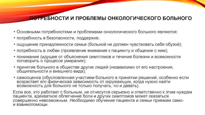 Основными потребностями и проблемами онкологического больного