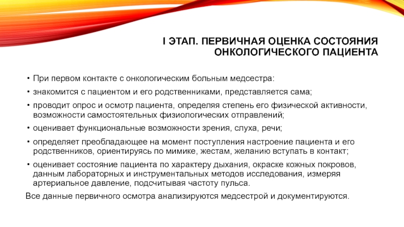 Слайд 6I этап. Первичная оценка состояния онкологического пациента