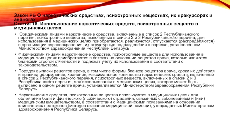 Статья 18. Использование наркотических средств, психотропных веществ в медицинских целях