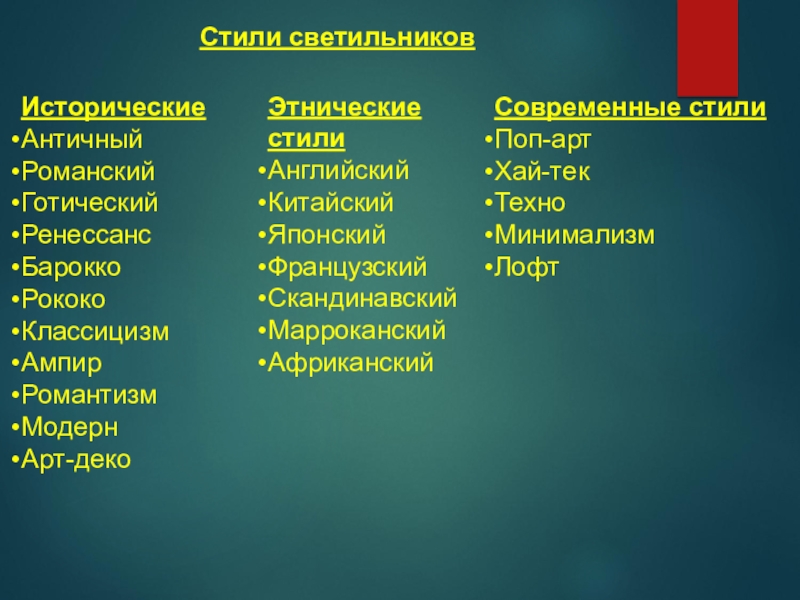 Слайд 51Классический стиль – прародитель большинства стилей светотехники. Узнать его просто:
