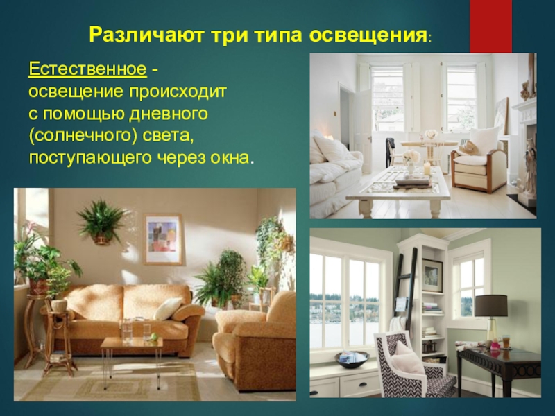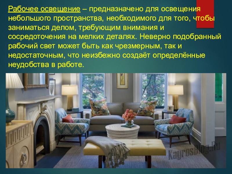 Слайд 17Потолочные подвесные светильники (люстры) – 95% освещения – это верхний